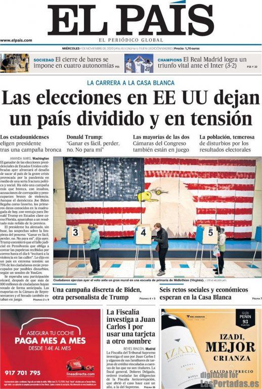 Estados Unidos vive días de gran tensión en medio de unas elecciones presidenciales que han llegado con pandemia y marcadas divisiones a nivel nacional entre partidarios del presidente republicano Donald Trump y el exvicepresidente demócrata Joe Biden.